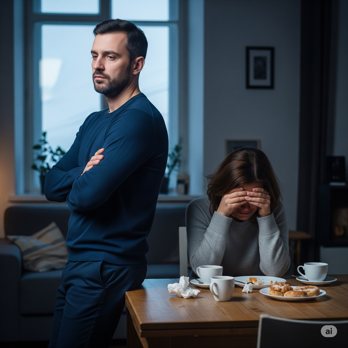 Слова падали тяжёлыми камнями. Я стояла и смотрела на него, не веря. Передо мной сидел мой муж, отец нашего ребёнка, человек, с которым я делила жизнь. И он говорил, что всё — конец.