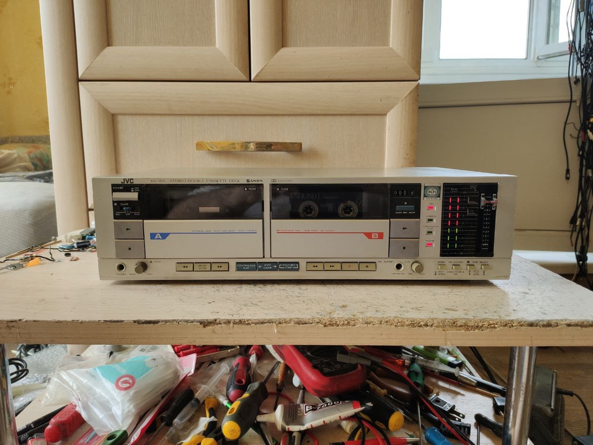 JVC KD-W5.Дживисяка двух карманная, уже не смидесятые, но ещё и не девяностые, так что железо уже разбавлено пластиком, но пока ещё не в таком количестве, что бы называть это погремушкой. И снова шиномонтажка, в заботе о бесшумности, в протяжках аж по три идлера, причём мелких, так что запаса по зацепу минимум. Вообще дживиси любили делать излишние навороты на пустом месте, инженеры выпендривались по полной, изгалялись как могли, что бы в будущем поглумиться над теми, кто попытается это всё обслуживать и ремонтировать😌. Но выбирать не приходится, по этому, в сердцах посылая инженеров дживиси в дальнее пешее путешествие, заставляем это работать. Дабл дека на каждый день, за надёжность не ручаюсь, но пока работает, звучит хорошо. 👍 #cassettetapes #cassette #cassettecollection #cassettecollector #tapedeck #cassetterecorder #vintage #vintagehifi #vintagestereo #oldsound #oldsounds #stereosound #stereo #audio #retroaudio #electronic #vintageelectronics #sound #retrosound #vintagesound #hi