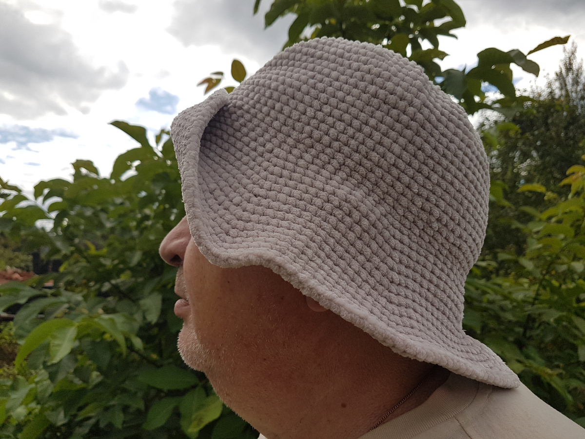 После завершения вязания, панаме необходимо придать удобную форму, одеть на голову и, при необходимости, немного потянуть в разные стороны. Тем самым, панама сядет, как нужно, и немного станет пошире по объёму, но не более 1 см, как правило (этот момент зависит от того, кто как вяжет (плотно или свободно).