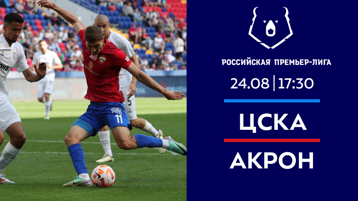 В воскресенье, 24 августа, в 17:30 (МСК) на стадионе «ВЭБ-Арена» в Москве начнётся игра 6-го тура РПЛ ЦСКА – «Акрон». Этот матч в прямом эфире покажет федеральный канал «Матч ТВ». В случае победы «армейцы» могут возглавить таблицу чемпионата вместе с «Локомотивом». Однако у гостей из Тотьятти свои мысли на этот счёт. ЦСКА Московский ЦСКА классно начал новый сезон. Фабио Челестини сразу же выиграл с «армейцами» трофей – Суперкубок России. После чего его команда потерпела всего одно поражение в семи играх РПЛ и Кубка России, да и то в серии пенальти как раз от «Акрона». Так что, начало у швейцарского специалиста в России получается максимально успешным. Разумеется, и в предстоящей встрече ЦСКА будет стремиться добиться победы. На счету «армейцев» 11 набранных очков по итогам 5 стартовых туров РПЛ. За это время ЦСКА одержал три победы и дважды сыграл вничью. В случае победы в предстоящей игре подопечные Фабио Челестини смогут догнать «Локомотив», уже сыгравший матч 6-го тура. Если «Красно