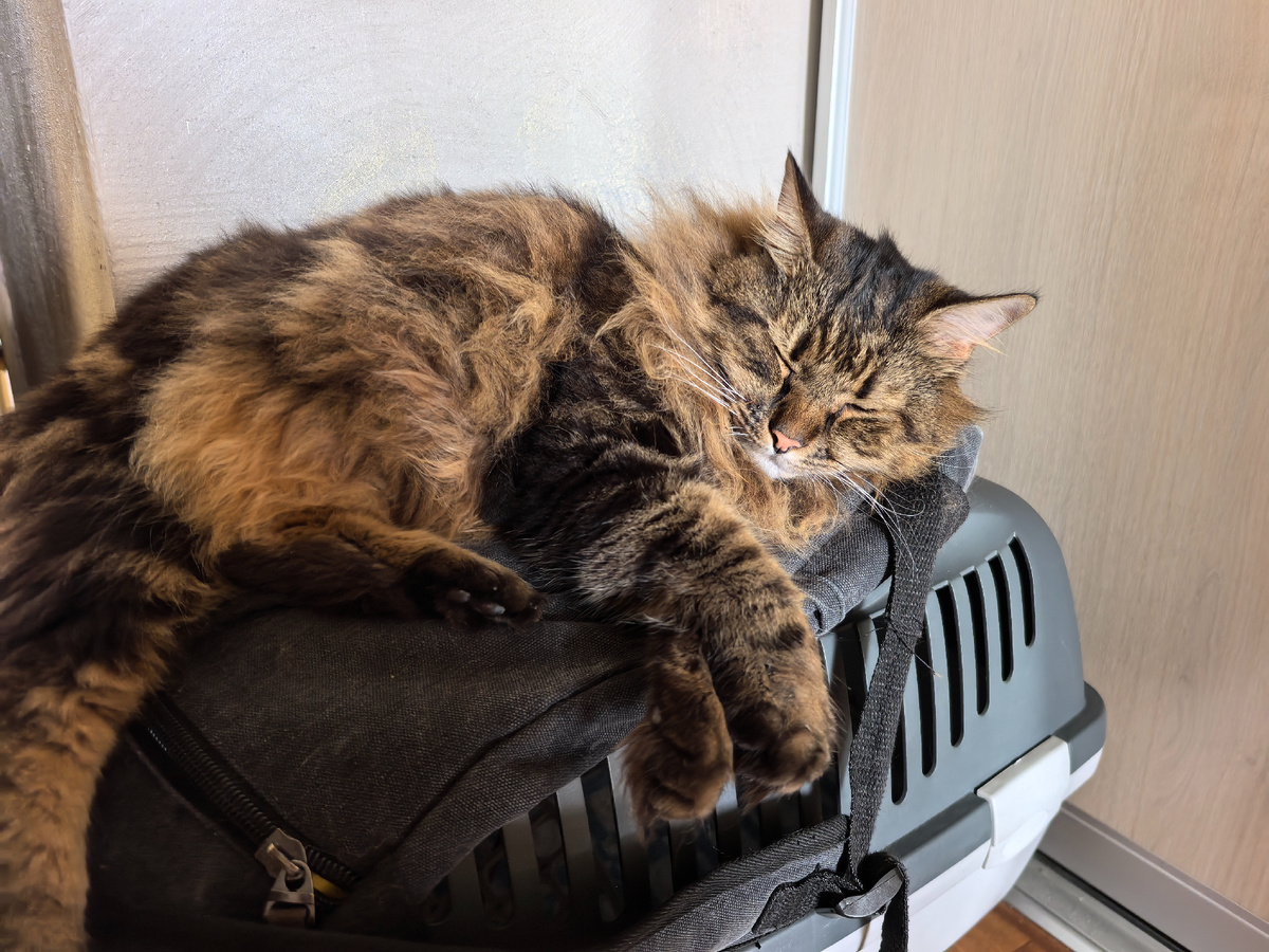 Всем привет! С вами Кузя Кусалочкин (он же царь Кузьма I). Сегодня расскажу про то, что хозяин не держит своё слово, и немного пожалуюсь на пылесос. Хозяйка больше не встаёт очень рано. Проснулась как обычно. Ну и я вместе с ней сразу пошёл на кухню. Царю (то есть мне) подали паштетик на царской тарелке. Потом я ушёл спать на рюкзачке: А людишки мои валялись в кровати, смотрели сериал. Досмотрели все серии. Конец, как всегда, счастливый. И вот я совсем не понял хозяина... Значит, он сказал, что надоели эти турецкие сериалы, одно и тоже, сюжет предсказуем. А в итоге что? Взял и нашёл новый сериал. Ну посмотрим. Это я был недоволен тем, что мне помешали мыться: А хозяйка поняла, откуда мог идти запах средства от блох за день до этого. Тут вариантов два: либо это воняло из шкафа, в котором стоят остатки средств, либо кто-то на улице запшикался и пошёл в подвал. Так что из управляющей вполне ещё могут появиться. Хозяйка так надеялась, что они придут, пока хозяин в отпуске будет, чтобы он
