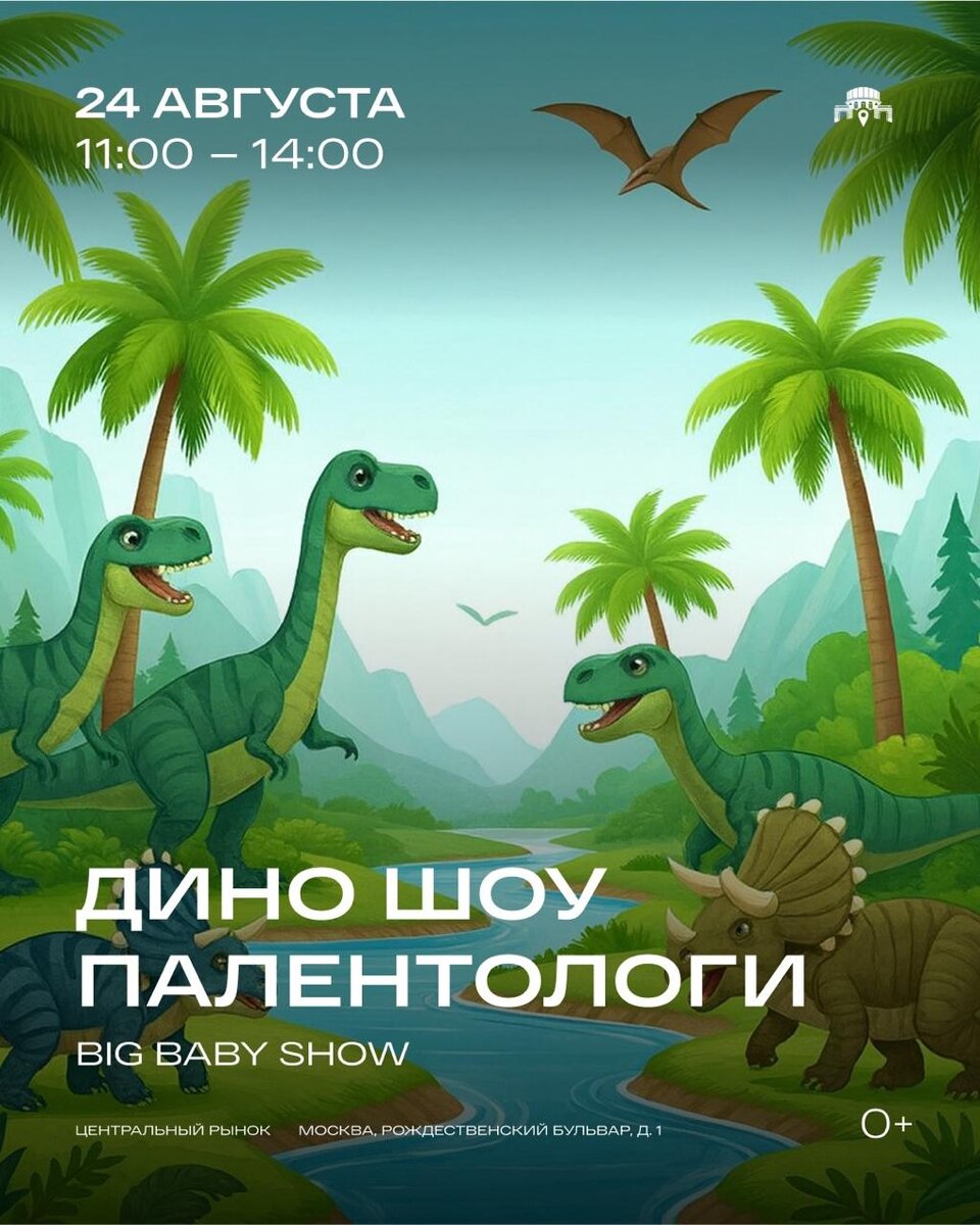 ➡️ Яркие эмоции и семейные утренние программы для детей — всё это ждёт вас на Центральном 24 августа | Фудхолл «Центральный рынок», Рождественский бульвар, д.1 11:00–14:00 — Big baby show Вас ждут впечатляющие встречи с огромным динозавром, интерактивные игры с лабиринтами и сокровищами, а также захватывающее неоновое шоу 11:00–14:00 — м/к детский «Картина сова» Каждый ребенок сможет создать свою уникальную картину 🧷 Бесплатная Москва