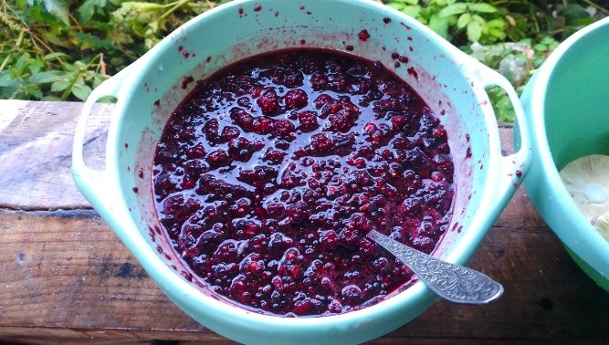 Что у нас ещё есть хорошего этим необычным летом - так это ежевика. Уже года четыре мы её не видели, потому что она превращалась в сухофрукты раньше, чем успевала созреть: видимо то, что мы стали уже считать нормой, на самом деле - засуха. Зато нынче ежевики нам достаётся вдвойне, потому что во-первых - много ягод, во-вторых - никто кроме нас её не собирает. Дороги нет! Не то, что рыбаки не ездят - даже местные жители в лес не ходят. А мы - с трудом, но ходим😃 Потому что ежевику очень любим. По этой же причине варенье из неё не варим - съедаем перемешанную с сахаром. Все люди, которых я знаю, собирают лесные ягоды исключительно с целью наварить варенья, чтобы есть его зимой, но по-моему это странно - не есть вдоволь свежих ягод, когда они есть. Я варенье варю, только когда свежие ягоды с сахаром уже не лезут😄 То есть - не каждый год. В этом году существуют реальные шансы на ежевичное варенье - последняя миска с ежевикой на столе чего-то застоялась, а в лесу её ещё много. Р