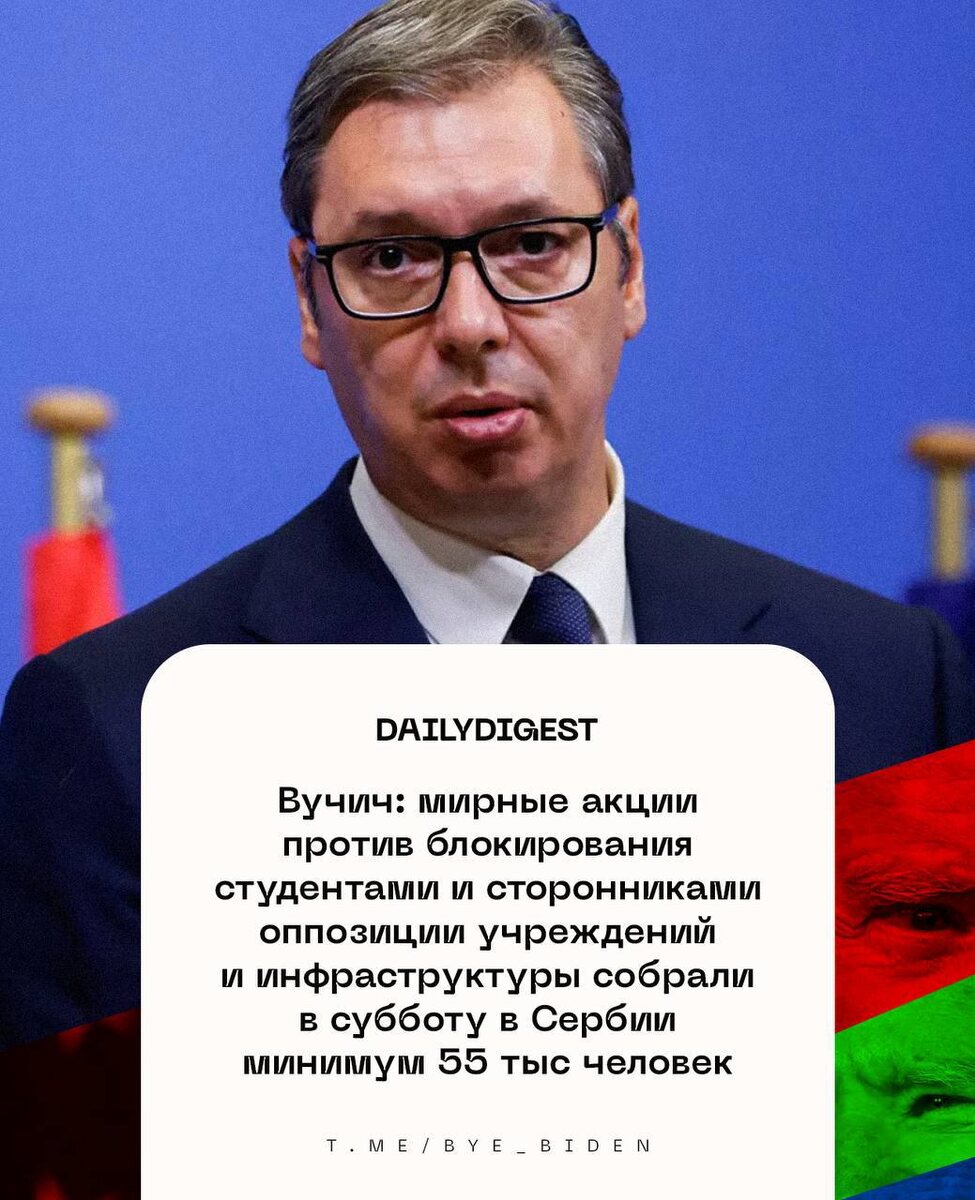 ☑️ Главные новости на утро 24 августа: 🔹Вучич: мирные акции против блокирования студентами и сторонниками оппозиции учреждений и инфраструктуры собрали в субботу в Сербии минимум 55 тыс. человек. 🔹Киев в течение шести недель получит более 3 тыс. американских авиационных ракет ERAM — The Wall Street Journal со ссылкой на источники. 🔹Мадуро позитивно оценил мобилизацию в Венесуэле в ответ на угрозу со стороны США. 🔹Марию Шарапову включили в Международный зал теннисной славы. 🔹Новые ракеты «Фламинго», которые якобы создают на Украине, не помогут Киеву переломить ход СВО — депутат Госдумы Бородай. 🔹 США несколько месяцев не разрешают Украине бить вглубь РФ ракетами ATACMS — The Wall Street Journal со ссылкой на источники. 🔹Правая Партия свободы в Нидерландах предложила ввести обязательную химическую кастрацию для педофилов. UPD-1: Норвегия предоставит Украине средства ПВО на сумму более $695 млн, заявили в правительстве. UPD-2: Норвегия и Германия профинансируют для Украины