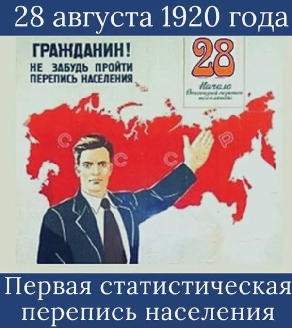 28 августа 1920 года была официально объявлена дата старта первой советской всероссийской переписи населения после Октябрьской революции 1917 года. Это событие стало важным этапом демографического учёта нового государства в условиях Гражданской войны. Значение события: