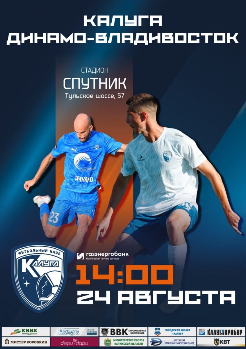 Сегодня, 24 августа, в 14:00 по московскому времени на стадионе «Орбита» в Калуге состоится матч 6-го тура Второй лиги дивизиона А группы серебро между местной «Калугой» и владивостокским «Динамо-Владивосток». Обе команды подходят к этой встрече в хорошей форме: калужане в прошлом туре одержали домашнюю победу над «Родиной-2» из Москвы со счетом 1:0, а состав «Динамо-Владивосток» уверенно переиграл «Торпедо Миасс» со счетом 2:0. В текущей турнирной таблице «Калуга» занимает 1-ю позицию, тогда как «Динамо-Владивосток» расположилось на 6-й строчке. Последняя очная встреча между этими командами, состоявшаяся 31 мая во Владивостоке, завершилась с ничейным счётом 1:1. 6+