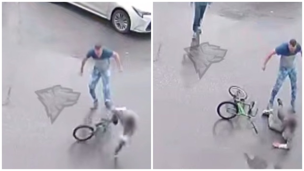 Он сбил школьника с велосипеда и дважды пнул, когда тот уже лежал на земле. Инцидент произошёл у дома № 112/4 на улице 1-й Чулымской в Ленинском районе областной столицы. Видео с места происшествия опубликовал телеграм-канал АСТ- 54 black. На кадрах видно, как мужчина ударом ноги сбивает мальчика с велосипеда, а потом несколько раз пинает лежащего на земле подростка. По словам очевидцев происшествия, мужчина таким образом решил вступиться за дочь, которую якобы напугал этот мальчик. Однако позже выяснилось, что он напал не на того школьника. Пострадавший ребёнок стал жертвой случайно.