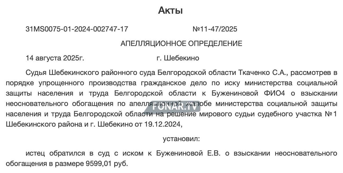 ⚖️ В Белгородской области прошли несколько судов из-за ошибочно, по мнению минсоцзащиты, выплаченных шебекинцам компенсаций за обстрелы