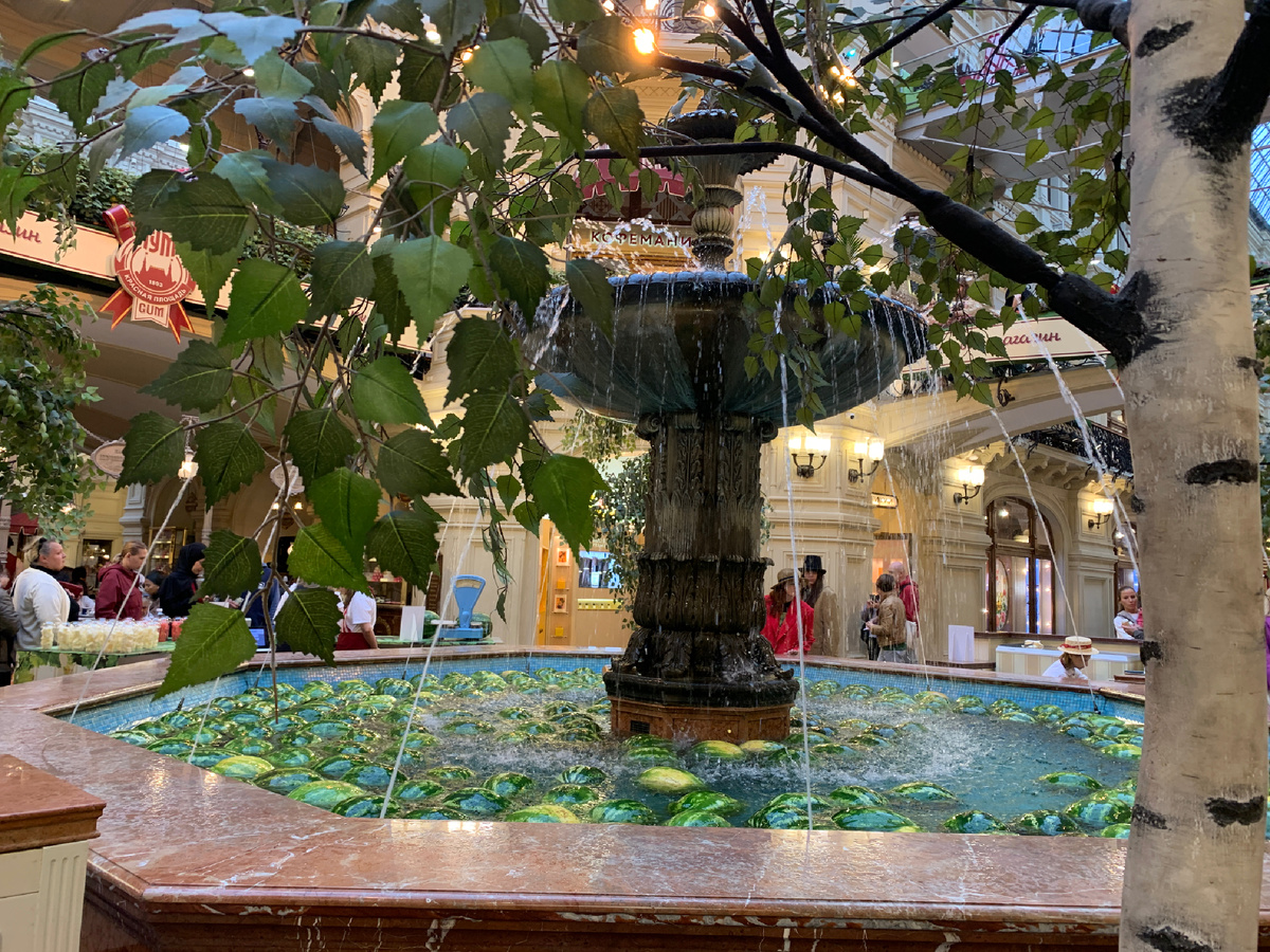 Три августа плавали во время летней августовской жары, а в 2025 в прохладе рано уходящего лета. ВСЕ ФОТО АВТОРА СТАТЬИ Вот такая картина в ГУМЕ у фонтана, а точнее в самом фонтане.Это часть традиции ГУМа. С приходом разных сезонов в фонтан помещают что-то, что символизирует пришедший сезон. Плавать арбузы здесь начали в ДЕНЬ АРБУЗА, который ежегодно празднуют 3 августа. Считается, что впервые арбуз появился в Южной Африке. На этом континенте до сих пор можно встретить дикие ягоды, которые растут без помощи человека. Правда, плоды не такие большие, сладкие и вкусные. Дикий арбуз — небольшой и горьковатый, а современный вид, который мы с удовольствием вкушаем, к которому мы привыкли — следствие селекции. Родиной ДНЯ АРБУЗА является ст США, и называется он National Watermelon Day. Арбузной «столицей » России принято считать Астрахань. Там праздник в разные годы отмечался 15 и 17 сентября. 3 августа масштабные мероприятия проходят в США, России, Европе и страна