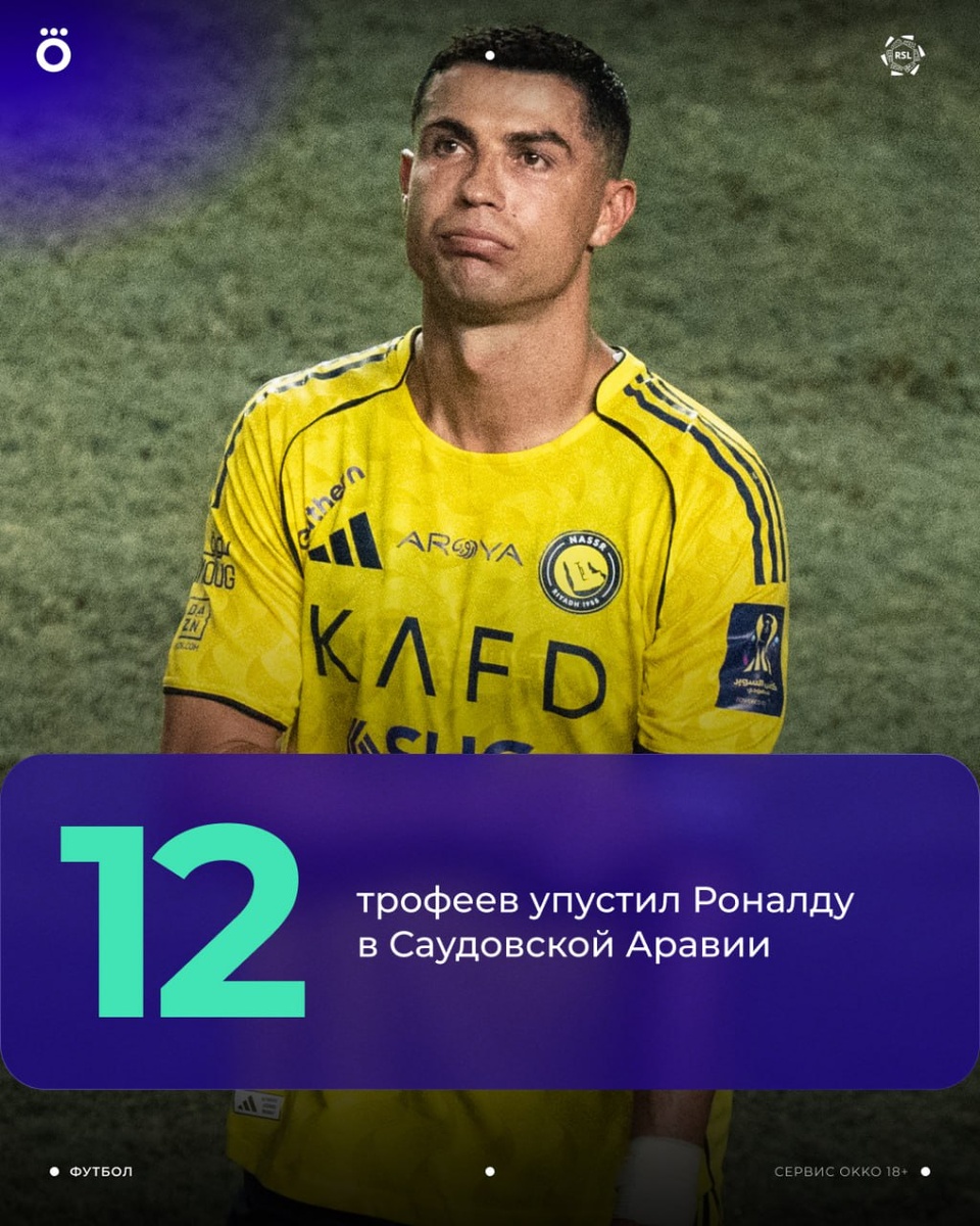 1️⃣2️⃣🏃 Не везет Криштиану в Аравии. Вчера Роналду упустил уже 12-й трофей с «Аль-Насром».