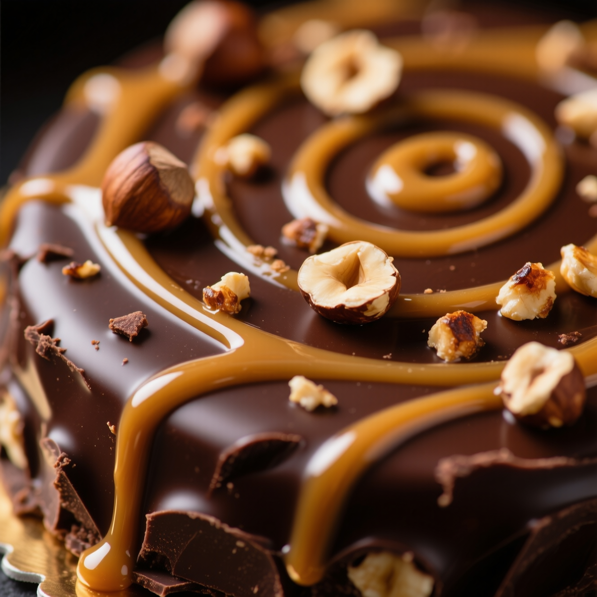 - Особенности: тонкие шоколадные коржи, сметанно-заварной крем, слой соленой карамели с фундуком.