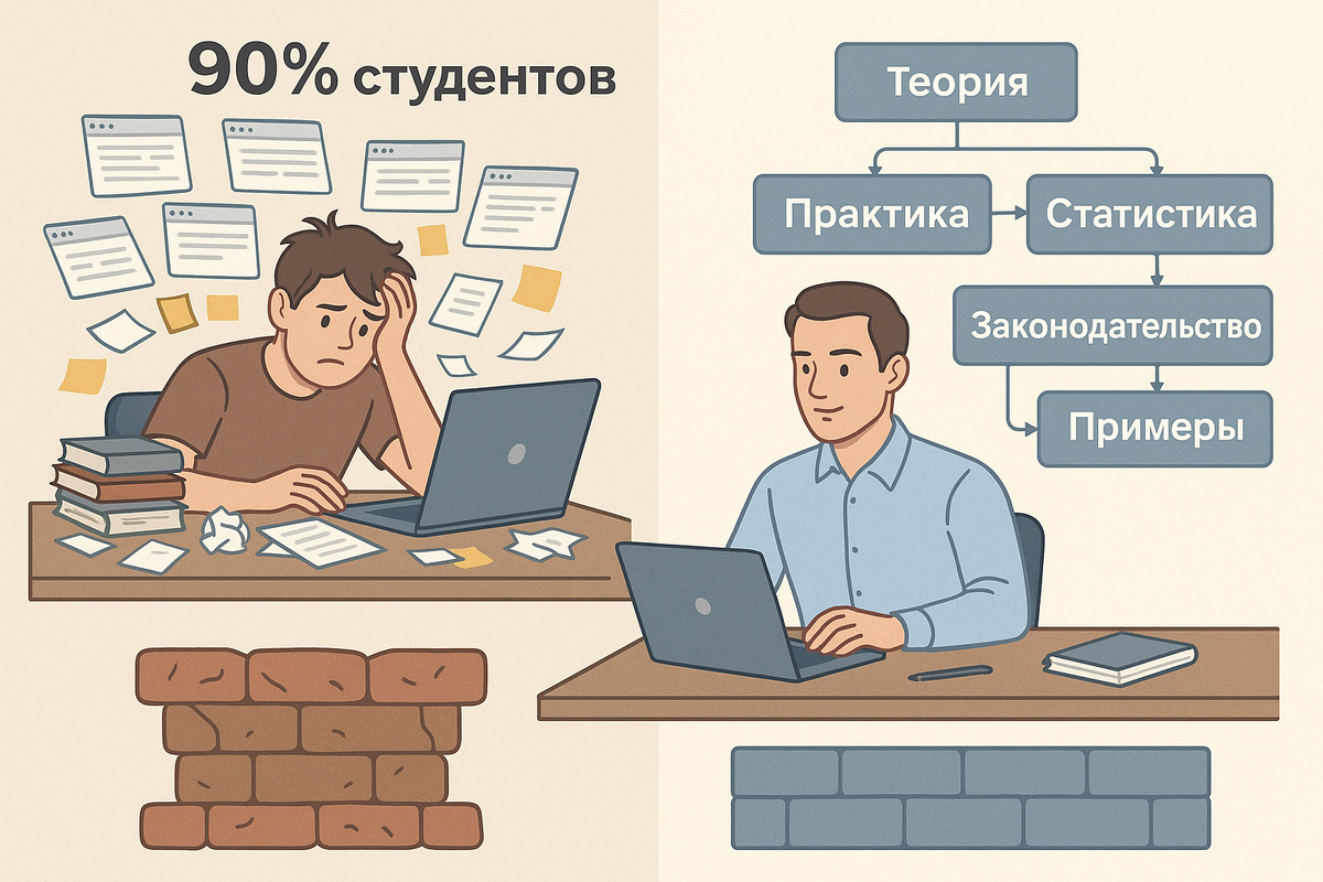 При подготовке ВКР или диссертации в области экономики ключевую роль играет статистическая база: данные Росстата, Всемирного банка , МВФ. Если студент не структурирует эти данные (например, разделив их на временные ряды, отрасли, макро- и микроуровень), то выводы будут противоречивыми. Чёткая структура позволяет выявить закономерности, без которых исследование рискует остаться набором несвязанных таблиц. Исследования в этой области опираются на кейсы организаций, стратегические документы и нормативные акты. Согласно приказу Минобрнауки РФ №118 от 24.02.2021 (minobrnauki.gov.ru), именно структура анализа и корректность работы с источниками определяют качество диссертаций по направлениям «Менеджмент» и «Государственное и муниципальное управление». Карты объектов (например, «организация → процесс → результат») позволяют выстраивать главы логично и избегать хаоса в тексте. Будущие юристы сталкиваются с массивом нормативных актов, судебной практики и доктринальных источников. Важно выстраив