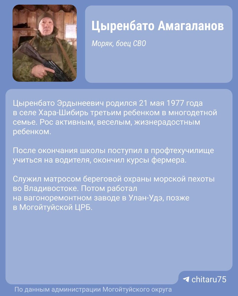 Моряк из Забайкалья, мечтавший стать фермером, погиб на СВО в День Победы. В сентябре 2024 года Цыренбато заключил контракт с Министерством обороны РФ. У бойца остались мать, дочь и две сестры. Ему было 48 лет. По данным администрации Могойтуйского округа 🟦Подписаться