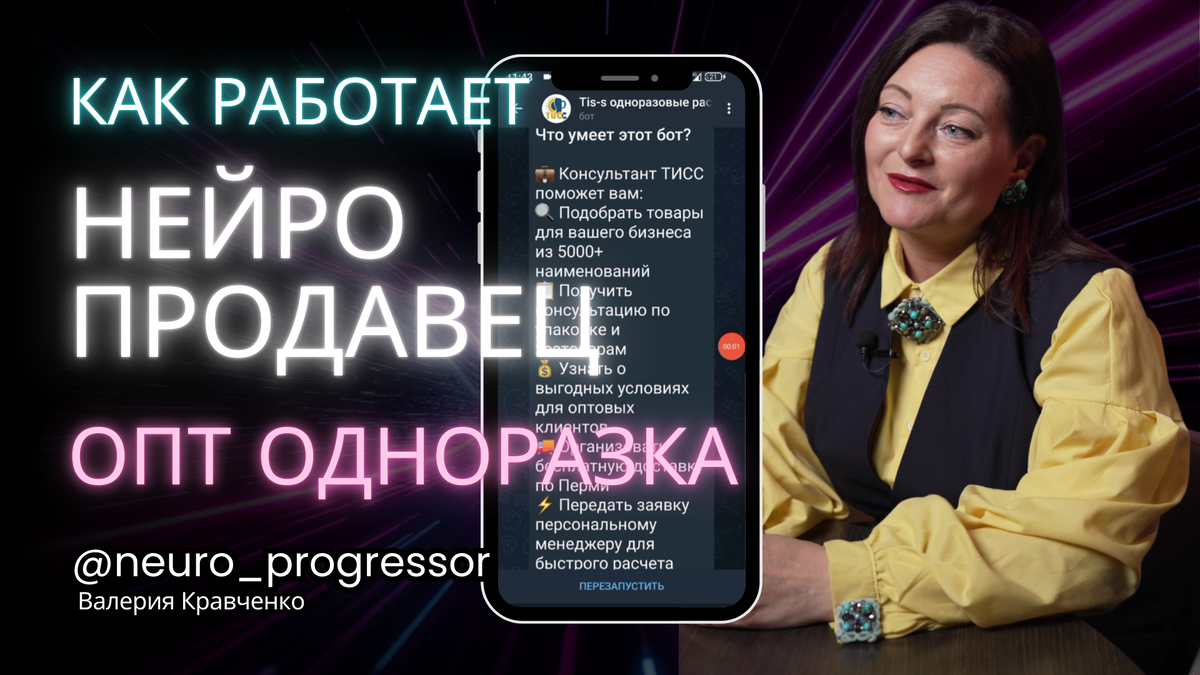 Вот диалог бота, который отвечает на вопросы и возражения, действуя как опытный менеджер. Обычно мы видим лишь результат — клиент оставил заявку, менеджер её обработал. Но что происходит внутри? Как искусственный интеллект справляется с задачами, где раньше нужен был человек? На примере оптового продавца одноразовой посуды мы видим работу нейро-продавца: 🔹 Приветствие и позиционирование — бот представляется («Я Анна, ваш консультант»), рассказывает о компании и сразу же квалифицирует клиента. 🔹 Реакция на срочные запросы — когда «капризный» клиент требует товар к завтрашнему дню, бот проверяет условия и отвечает: поставка возможна в день обращения при заказе до 11 утра. 🔹 Работа с возражениями — на фразу «цены кусаются» бот действует по алгоритму: присоединяется, аргументирует преимущества и снова возвращает клиента в воронку. 🔹 Уточнение деталей — доставка, юрлицо, объёмы, форма оплаты. Всё фиксируется пошагово, чтобы потом менеджеру осталось выставить счёт. 🔹 Информация о логист