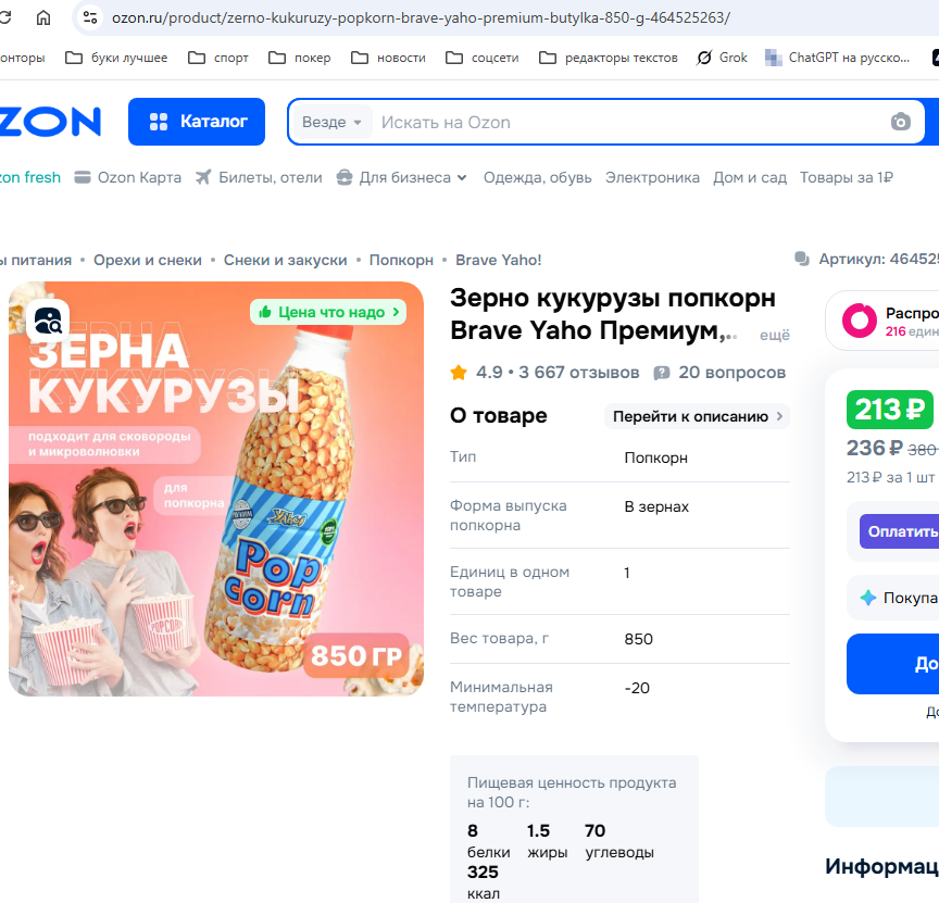 Приобретя попкорницу, конечно сразу встала задача поиска и покупки хорошего зерна. Закупил несколько видов, желая найти лучшее за минимальную цену. Вот мой рейтинг, без претензии на абсолют конечно. Покупалось всё на Озон. Худшее зерно. Брал его на распродаже по 158р., самая низкая цена была. Зерно смесь премиума с мусором. Раскрытие хорошее, но процентов 15 просто не возможно разжевать и есть опасность сломать зубы. Не советую. Очень хорошее зерно. Раскрывается полностью, вкус отменный. Нюансы: надо жарить чуть дольше, чем другие, так как сердцевина сыровата и попадаются "прилипающие к зубам" зерна. Идеально для попкорна в карамели. На сегодняшний день, мой победитель. Раскрывается полностью, зерно абсолютно сухое, из-за этого его легко можно сжечь, так что лучше выключить нагрев пораньше и получить немного нераскрывшегося зерна, чем сжечь. Идеально с солью. Хотел попробовать зерно от Фруттерия, оно процентов на 10 дороже, но закончилось и не успел купить( Если появится, возьму и