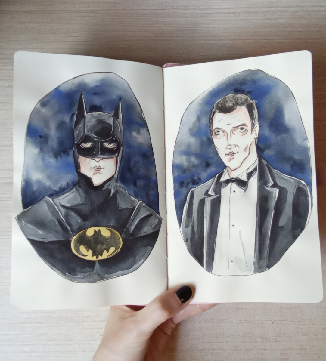 Всем чернично-космический привет! И в этом году не пропускаю 25 августа - день рождения моего любимого режиссёра Тима Бертона. В прошлом году я показывала в этот день серию работ персонажей, которые рисовала по нескольким его фильмам. Кажется, я уже перерисовала всех для меня любимых персонажей. И на этот раз хотела заняться уже перерисовкой имеющихся работ. Но подумала: "А почему бы не изобразить героев из "Бэтмена"" ? Их я ещё не рисовала ни разу. Фильмы "Бэтмен" и "Бэтмен возвращается" мне понравились, хотя я не любитель историй о супергероях. Наверное, поэтому я отложила просмотр серии о Бэтмене на самую последнюю очередь. Фильмография Бертона была пересмотрена по несколько раз. А вот истории о герое в костюме летучей мыши я стойко игнорировала. Если честно, даже вообще не хотела их смотреть. Но однажды рискнула включить и не пожалела. Мрачные и готические, с чуть театральной и цирковой атмосферой, они поглощают - и ты становишься частью Готема и событий, происходящих на его