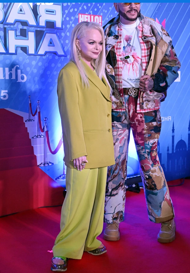 Вот видите? Это Лариса Долина. Женщина, у которой в молодости был очень красивый голос. Может, и сейчас она прекрасно поет, не знаю - я не очень люблю музыку, признаюсь вам откровенно, и целенаправленно практически никого не слушаю. Музыка мешает мне думать! Про индивидуума справа - тоже с красивым голосом - я ничего говорить не буду, у него достаточно говорящий костюм. Лично я глубоко убеждена, что рукава пиджака у человека с таким вкусом должны быть завязаны сзади, и никто никогда не убедит меня в обратном. Впрочем, некоторым нравится. Имеют право! Но как можно написать под этой картинкой, что на ней запечатлена "шикарная Лариса Долина в стильном горчичном костюме", скажите мне? Во-первых, это не костюм, потому что пиджак и брюки не только из разной ткани, но и выполнены в разном стиле. Во-вторых, уважаемая редакция плохо понимает значение слова "стильный"! Вот стильный горчичный костюм: Вот ничего так костюмчик: Вот такое можно предложить любителям оверсайза и ярких цветовых сочетан