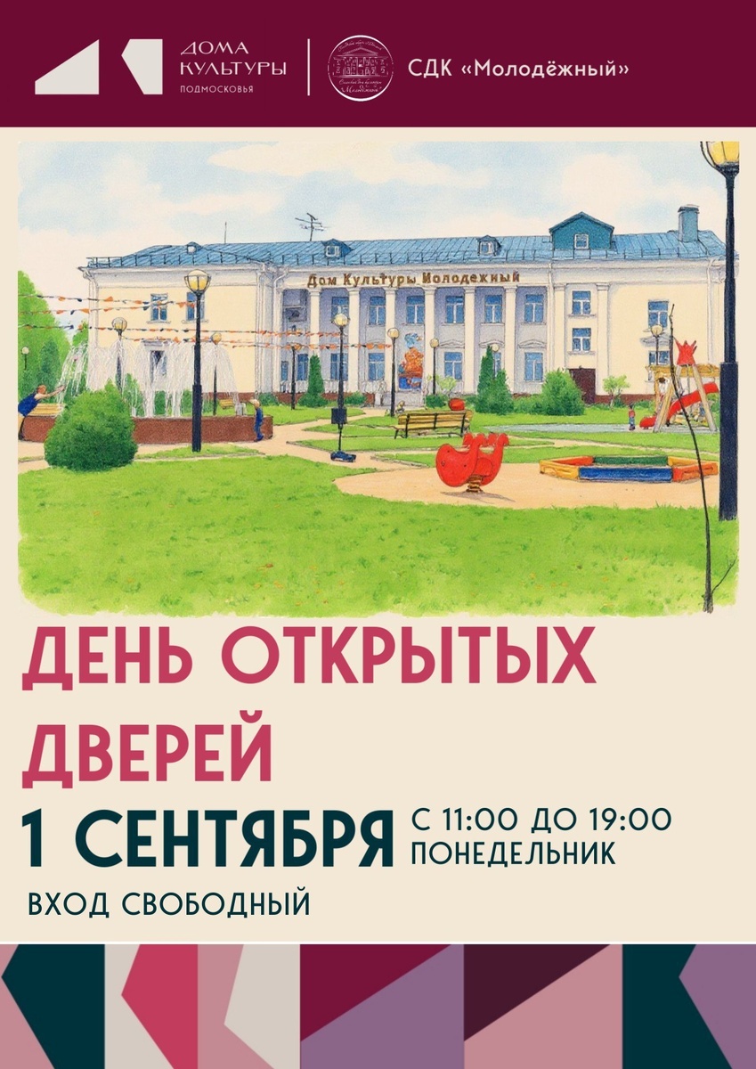 ✨ ДЕНЬ ОТКРЫТЫХ ДВЕРЕЙ в пос. Молодёжный 🎀 В течение всего дня (с 11.00 до 19.00) вы сможете посетить нас, познакомиться с направлениями и выбрать занятия по душе. 🚫 Возраст: 0+ 📆 01.09.2025 🏢 СДК «Молодежный» 📍 г.о. Подольск, пос. Молодёжный, д.30 💰 Вход свободный❗️ ⭐Разместить публикацию ⭐Поддержать канал голосом 💰 Стань курьером в Подольске – твой доход, твое время! ✅ Мероприятия Подольск https://dzen.ru/id/66ed500f7b5671493eca3fd6 http://vk.com/podolsk_events http://dzen.ru/podolsk_events