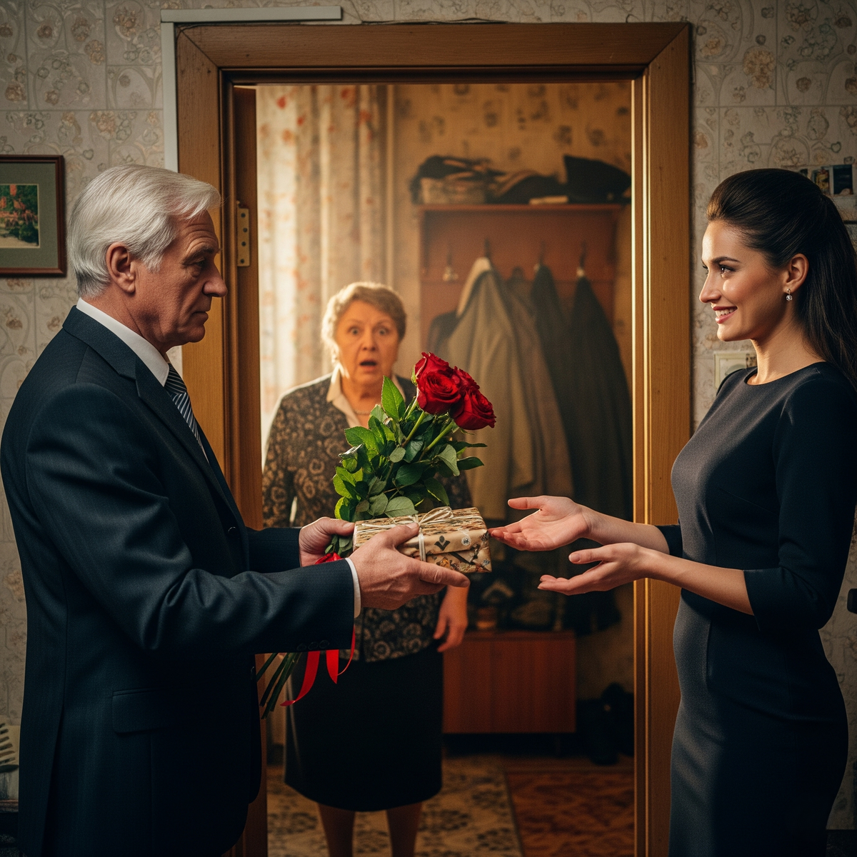 А Валентина Михайловна стоит, рот открыла. До неё дошло наконец — мужчина пришёл не к ней, а к дочери. С цветами. С приглашением.