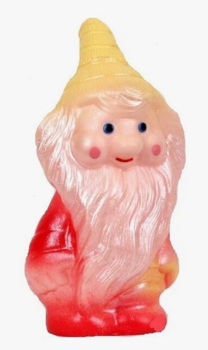 Резиновый гномик. Это, наверное, самая первая игрушка, которую я очень хорошо помню. Не потому что она на некоторых детских фотографиях. А просто помню, как я с ней играла. Один раз мама собрала все игрушки в прозрачный мешок и вынесла на балкон, а этот гном смотрел на меня. Для ребенка, который еще не умел ходить, достать эту игрушку было целым приключением. А еще я этой игрушкой получила первый свой фингал под глазом. Видимо не хотела делиться с другом. В честь него я написала рассказ под названием «Гном», когда ехала в поезде домой.
