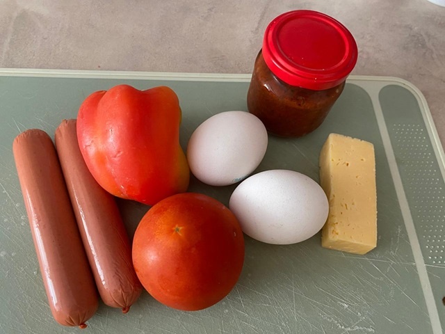 Друзья! Этот рецепт для тех, у кого нет духовки или желания мыть сковороду. Мне он очень понравился, предлагаю и вам приготовить легкий вкусный омлет в микроволновке. Яйца- 2 штуки Молоко - 50 мл Аджика- 1 ч.л. Колбаса (сосиски) - 30 гр Сыр - 30 гр Помидоры-1/2 шт. Зелень (по желанию) 1. Разбиваем два яйца в миску, которая подходит для микроволновки. Добавляем молоко и взбиваем венчиком. 2. Добавляем по желанию аджику. 3. Нарезаем все ингредиенты кубиком. Добавляем колбасу в яичную смесь. 4. Теперь очередь помидоров. 5. Следующий продукт-= болгарский перец. 6. Натираем на крупной терке сыр. 7. Также отправляем его в миску. 8. Тщательно перемешиваем все содержимое миски. 9. Ставим миску в микроволновку на 8-10 минут. Вот такой омлет получился! Приятного аппетита!