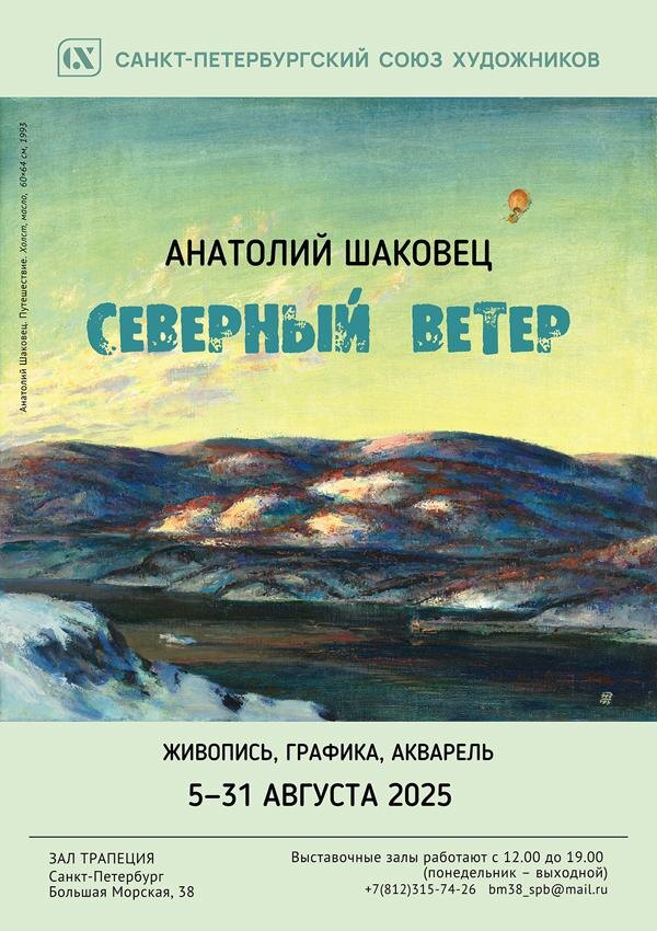 Уважаемые читатели и подписчики канала «Художники и Поклонники», благодарим Вас за интерес к нашему каналу. Мы начинаем публиковать календарь событий Петербурга. На первом этапе - это перечень выставок, но постепенно он будет расширяться и будет включать в себя различные культурные мероприятия. Мы не претендуем на то что сможем осветить все культурные события Петербурга, потому что их очень много, но мы постараемся следить за открытием и проведением наиболее интересных на наш взгляд событий. Мы планируем снимать репортажи и писать статьи о выставках и мероприятиях Петербурга и надеемся, что Вам будет интересно. Анатолий Шаковец «Северный ветер» 5 – 31 августа 2025 Живопись, графика, акварель Санкт-Петербургский Союз Художников ул. Большая Морская, 38 Анатолий Григорьевич Шаковец (1950-2021). В 1970 году он окончил Ярославское художественное училище, а в 1980-м – Ленинградский государственный институт живописи, скульптуры и архитектуры им. И.Е. Репина.В 1989 году вступил в Союз худ
