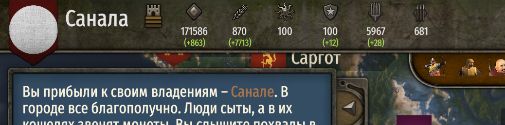 Тем не менее, захватить такой город - задача со звездочкой, ведь тут 110 тысяч ополченцев! Даже самая крупная армия, которую теоретически могут создавать фракции (они обычно создают не более 2000 человек), состоящая исключительно из катафрактариев, не сможет захватить этот город. Ну а по части налогов, то с супер-наместников, трехмиллионный город приносит по 6 миллионов динар.