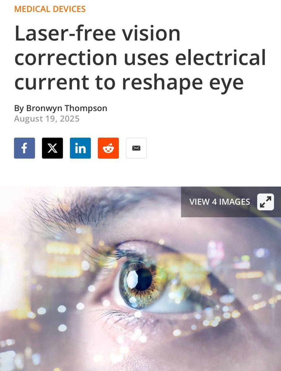 Теперь форму роговицы можно менять неинвазивно — врачи используют слабый электрический ток и сдвиг уровня pH. Зрение восстанавливается за МИНУТУ без боли.