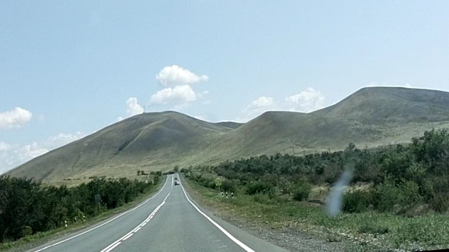 Мы приехали на "ДОЛГИЕ ГОРЫ". Это 120 км от Оренбурга. О них мы давно мечтали, а получилось, что мы к ним не подготовились. Машину оставили у подножия, здесь специальная стоянка. Начали постепенно подниматься. Подъём не пологий, местами даже довольно круто, приходилось держаться за какие то камни. Высота конечно не большая, где то 440 метров, но когда стоишь на верху на узком хребте, то испытываешь волнение. Фотография не передаёт угол спуска - подъёма, в реальности гораздо страшнее. Мы долго шли по узкому хребту, по нему была утоптана тропинка. На склонах этих гор не было ни каких деревьев, это были просто голые волнообразные холмы, которые поражали своей необычностью. Поднимешься на один ребет и думаешь, вот сейчас откроется вся картина, но нет, за ним следующий, потом опять спуск - подъём и так нет конца. Оказывается этот хребет длиной 14 км. Поднявшись на самый высокий, понимаешь, что только здесь можно по настоящему отпустить все заботы и насладиться моментом. Смотришь на это ве