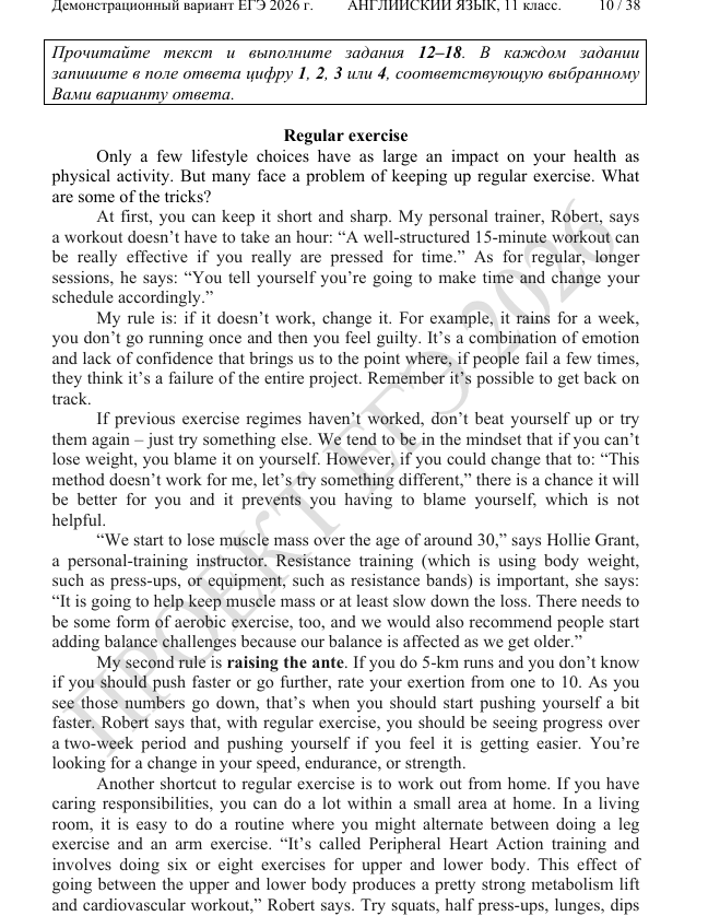 Ответ: 1 — explain how not to give up exercising. What is the best summary of the advice given in paragraph 2?