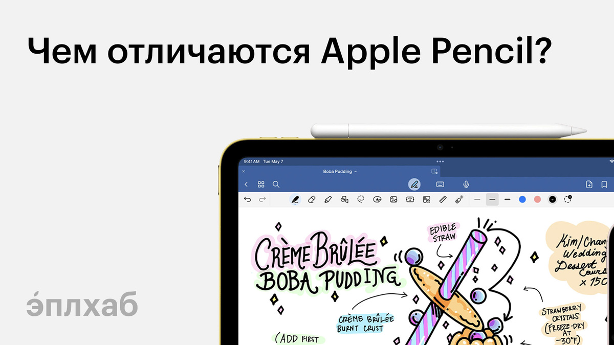 Сейчас у Apple четыре разных стилуса: Apple Pencil 1-го и 2-го поколения, модель с USB‑C и Apple Pencil Pro. И если раньше всё было просто — один карандаш, один iPad — то теперь запутаться стало гораздо легче. Разбираемся, чем отличаются модели и какой подойдёт именно вам. Это самый первый стилус Apple. Он подключается через разъём Lightning, не поддерживает магнитное крепление, жесты и беспроводную зарядку, но отлично справляется с базовыми задачами — рисованием, заметками, учебой. Apple Pencil (1-го поколения) можно использовать только со следующими моделями iPad: Главное отличие второй версии — беспроводная зарядка и магнитное крепление. Просто примагничиваете стилус к боковой грани iPad — и он заряжается сам. Также в этой модели появился жест двойного касания — можно быстро переключаться между инструментами (например, с карандаша на ластик). Отлично подходит для дизайнеров, студентов и всех, кто часто рисует, чертит или работает в графических приложениях. Apple Pencil (2-го поколе