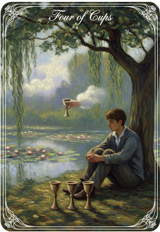 Среди яркого и порой драматичного мира карт Таро есть одна, которая говорит не о бурных страстях, а о тишине. Эта тишина может быть умиротворяющей, а может - оглушающей. Речь идет о Четверке Кубков, карте, чья загадочная и меланхоличная энергия часто ставит в тупик тех, кто ищет ответов в раскладах на отношения. На первый взгляд, это карта о застое, апатии и неудовлетворенности. Но если присмотреться, она становится зеркалом, в котором мы видим истинное состояние нашего сердца. В отношениях Четверка Кубков в прямом положении говорит о эмоциональном застое и пресыщении. Чувства притупились, а рутина стала тяжелым одеялом, под которым не остается места для радости. Карта показывает, что один из партнеров (или оба) настолько сосредоточен на своей внутренней неудовлетворенности, что не видит и не ценит тех благ, которые у него уже есть или которые ему предлагаются. Это не обязательно конфликт или ссора. Это скорее глубокое безразличие и эмоциональная слепота. Давайте представим историю. Ж