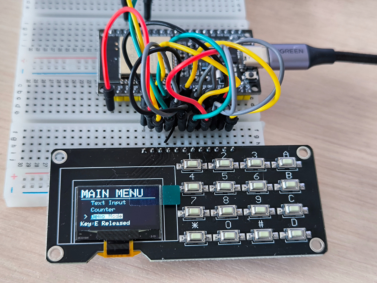 ESP32 + OLED 0.96 128x64 SSD1306 + Buttons 4x4