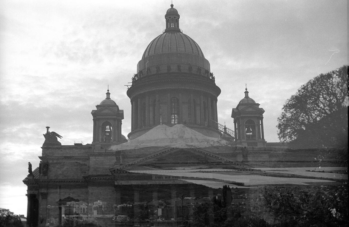 Исаакиевский собор подъехал: 1 — с Эльбрусом в сердце 2 — выстланный белыми гортензиями 🎞️ Kentmere PAN 400 8/11 • Из серии double exposure в рамках фотоконкурса PhotoKarton