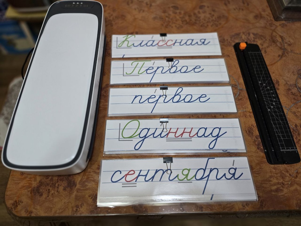 Лучшие друзья девушек-учителей - это не бриллианты, а цветной принтер, ламинатор, резак для бумаги и сама бумага. Готовность к школе номер... (уже и не помню, какой номер). Но это еще не всё. Следите за эфиром, дорогие подписчики. Да, кстати, это таблички на доску: разные виды дат и разные виды работ. Таблички будут крепиться на доску с помощью магнитной ленты. В какой-то степени меньше мела - меньше меловой пыли.