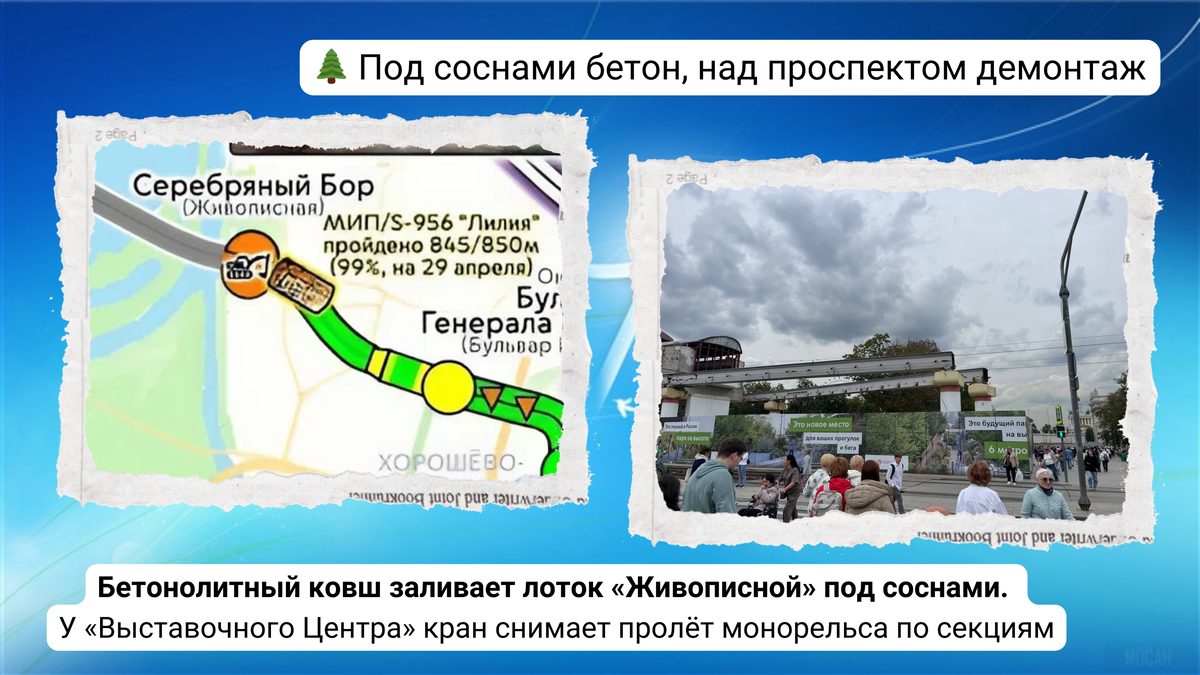 В обеденном выпуске за 27 августа 2025 года, по традиции, обсуждаются актуальные аспекты развития комплексной инфраструктуры Москвы (КИМ). Мы снова рассказываем просто о том, как меняется наш город и что это значит для нас с вами. На этот раз поговорим о станции "Серебряный Бор" Рублёво-Архангельской линии, и покажем демонтаж конструкций московского монорельса. А вы как считаете? Заметны ли изменения в вашем районе? Пишите в