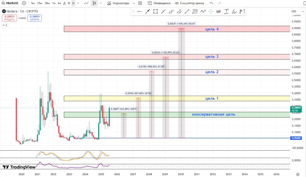 Hedera Hashgraph (HBAR)🚀 Используется для токенизации реальных активов (RWA) — процесса преобразования прав собственности на реальный актив в цифровой токен на блокчейне. 📌 Моя средняя точка входа на споте - $0,056 ✅ Консервативная точка фиксации пройдена. Пример того, что можно ожидать от других монет в альтсезон. Сейчас в инструмент входить поздно, но можно, только с целью спекуляции. 🎯 Моя первоначальная цель - 2, но от этого токена можно ожидать неожиданного взрывного роста. PS: 📈 По ходу роста и достижения целей буду обновлять информацию по каждой монете, а также сообщать о точках фиксации прибыли. 📌 Ищите интересующие вас монеты по хэштегам — например, #BTC ⚠️ Решения по покупке — только на вашей ответственности. Я делюсь своими знаниями и опытом, чтобы помочь найти выгодные точки входа и выхода. 💡 Инвестирую в монеты небольшой долей депозита с возможностью усреднения. Топ бирж, где я покупаю альткоины: ✅ Bybit ✅ Gate ✅ Bitget ✅ MEXC #HederaHashgraph #Hedera #HBAR #RWA #