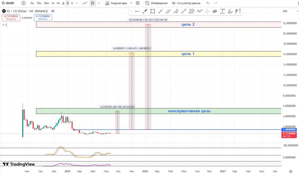 IO_NET (IO)🚀 Криптовалюта предназначена для обеспечения вычислительной мощности, необходимой для машинного обучения и приложений на базе ИИ. 📌 Моя средняя точка входа на споте - $1,48 ✅ Консервативная точка фиксации находится в 600% (6х) от действующей цены. Можно полностью зафиксировать прибыль или забрать свои вложенные средства, оставив бесплатные монеты до следующих целей. 🎯 Моя первоначальная цель - 2, так как новая монета в этом цикле и ожидать можно большого роста. PS: 📈 По ходу роста и достижения целей буду обновлять информацию по каждой монете, а также сообщать о точках фиксации прибыли. 📌 Ищите интересующие вас монеты по хэштегам — например, #BTC ⚠️ Решения по покупке — только на вашей ответственности. Я делюсь своими знаниями и опытом, чтобы помочь найти выгодные точки входа и выхода. 💡 Инвестирую в монеты небольшой долей депозита с возможностью усреднения. Топ бирж, где я покупаю альткоины: ✅ Bybit ✅ Gate ✅ Bitget ✅ MEXC #IONET #IO #iousdt