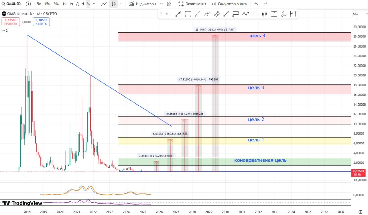 OmiseGO (OMG)🚀 Layer 2 для масштабирования Ethereum, которое обещает более быструю обработку транзакций и пониженные цены на газ. 📌 Моя средняя точка входа на споте - $0.185 ✅ Консервативная точка фиксации находится в 1200% (12х) от действующей цены. Можно полностью зафиксировать прибыль или забрать свои вложенные средства, оставив бесплатные монеты до следующих целей. 🎯 Моя первоначальная цель - консервативная цель. ❗️Рискованная покупка. Возможен рост до хая, если закрепится за наклонной линией. PS: 📈 По ходу роста и достижения целей буду обновлять информацию по каждой монете, а также сообщать о точках фиксации прибыли. 📌 Ищите интересующие вас монеты по хэштегам — например, #BTC ⚠️ Решения по покупке — только на вашей ответственности. Я делюсь своими знаниями и опытом, чтобы помочь найти выгодные точки входа и выхода. 💡 Инвестирую в монеты небольшой долей депозита с возможностью усреднения. Топ бирж, где я покупаю альткоины: ✅ Bybit ✅ Gate ✅ Bitget ✅ MEXC #OmiseGO #OMG #omg