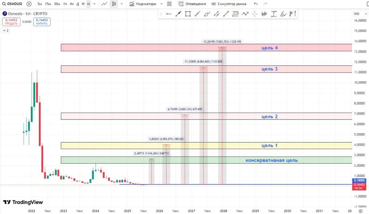 OSMO (Osmosis)🚀 DEX биржа в экосистеме Cosmos, которая позволяет пользователям создавать пулы ликвидности и торговать токенами с поддержкой межблочной связи (IBC). 📌 Моя средняя точка входа на споте - $0,18 ✅ Консервативная точка фиксации находится в 1400% (14х) от действующей цены. Можно полностью зафиксировать прибыль или забрать свои вложенные средства, оставив бесплатные монеты до следующих целей. 🎯 Моя первоначальная цель - 1, далее посмотрим, как покажет себя экосистема Cosmos (ATOM). PS: 📈 По ходу роста и достижения целей буду обновлять информацию по каждой монете, а также сообщать о точках фиксации прибыли. 📌 Ищите интересующие вас монеты по хэштегам — например, #BTC ⚠️ Решения по покупке — только на вашей ответственности. Я делюсь своими знаниями и опытом (более 6 лет), чтобы помочь найти выгодные точки входа и выхода. 💡 Инвестирую в монеты небольшой долей депозита с возможностью усреднения. Топ бирж, где я покупаю альткоины: ✅ Bybit ✅ Gate ✅ Bitget ✅ MEXC #OSMO #Osmo