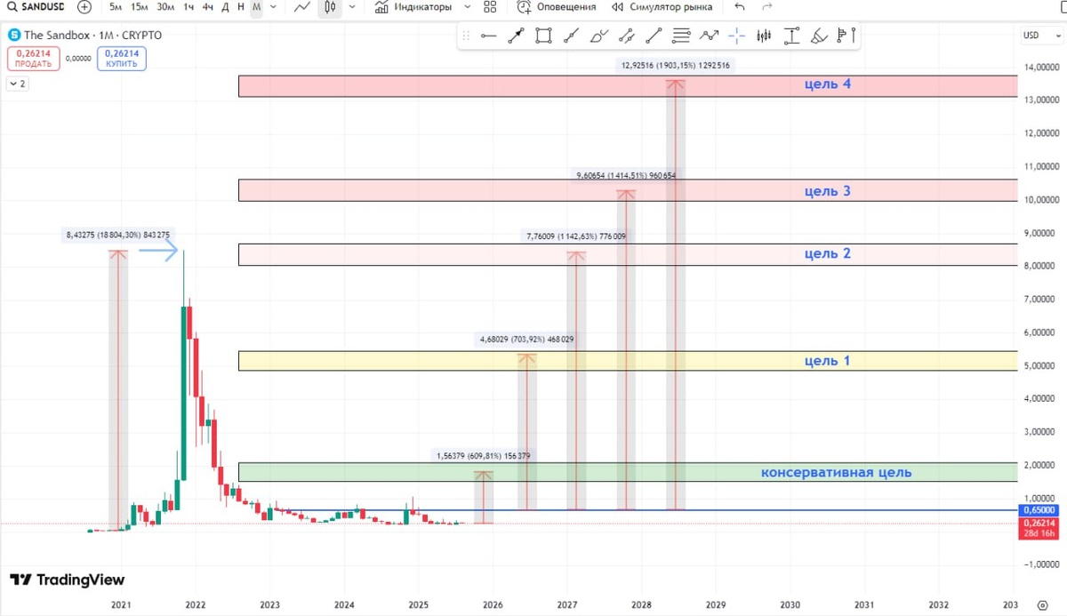 SAND🚀 Токен ERC-20 игровой метавселенной The Sandbox – игры «play-to-earn» на базе блокчейна с игровыми предметами в виде NFT. 📌 Моя средняя точка входа на споте - $0,65 ✅ Консервативная точка фиксации находится в 600% (6х) от действующей цены. Можно полностью зафиксировать прибыль или забрать свои вложенные средства, оставив бесплатные монеты до следующих целей. 🎯 Моя первоначальная цель - 2, далее буду смотреть по ситуации и степени вовлечения криптанов на период альтсезона 📈 PS: 📈 По ходу роста и достижения целей буду обновлять информацию по каждой монете, а также сообщать о точках фиксации прибыли. 📌 Ищите интересующие вас монеты по хэштегам — например, #BTC ⚠️ Решения по покупке — только на вашей ответственности. Я делюсь своими знаниями и опытом (более 6 лет), чтобы помочь найти выгодные точки входа и выхода. 💡 Инвестирую в монеты небольшой долей депозита с возможностью усреднения. Топ бирж, где я покупаю альткоины: ✅ Bybit ✅ Gate ✅ Bitget ✅ MEXC #SAND #TheSandbox #sand