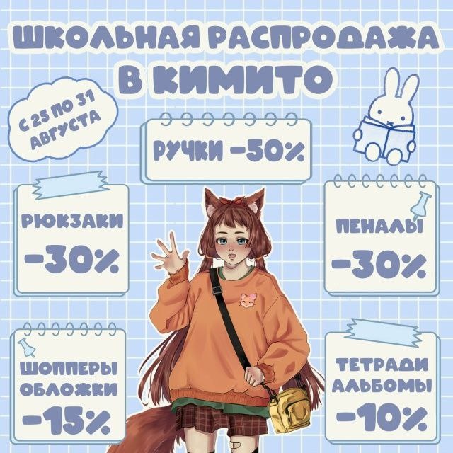 Π½ΠΈΠΊΠ° Β«Π Π°ΡΠΏΡΠΎΠ΄Π°ΠΆΠΈΒ» Π°ΠΊΡΠΈΠ²ΠΈΡΠΎΠ²Π°Π½Π°π₯ Π‘ΠΎΠ±Π΅ΡΠΈ ΡΠ²ΠΎΠΉ ΠΈΠ΄Π΅Π°Π»ΡΠ½ΡΠΉ ΡΠΊΠΎΠ»ΡΠ½ΡΠΉ ΡΠ΅Ρ ΠΈ ΠΏΠΎΠΊΠΎΡΠΈ Π½ΠΎΠ²ΡΠΉ ΡΡΠ΅Π±Π½ΡΠΉ Π³ΠΎΠ΄ ΠΊΡΡΡΠ΅ΠΉΡΠΈΠΌΠΈ ΠΏΡΠΈΠ½ΡΠ°ΠΌΠΈβΊοΈ Π‘ΠΊΠΈΠ΄ΠΊΠΈ Π΄ΠΎ 50% Π½Π° Π²ΡΡ Π΄Π»Ρ ΡΡΡΠ±Ρ ΠΈ ΠΌΠΎΡΠΈΠ²Π°ΡΠΈΠΈ π ΠΠΠ¦ΠΠ― ΠΠΠΠ‘Π’ΠΠ£ΠΠ’: π Π‘ 25 ΠΏΠΎ 31 Π°Π²Π³ΡΡΡΠ° π Π Π½Π°ΡΠ΅ΠΌ ΠΌΠ°Π³Π°Π·ΠΈΠ½Π΅ ΠΏΠΎ Π°Π΄ΡΠ΅ΡΡ: Π³. Π‘Π°ΡΠ°ΡΠΎΠ² ΡΠ». ΠΠΎΠ»ΠΆΡΠΊΠ°Ρ 27Π° ΠΠ΄Π΅ΠΌ Π² ΠΠΈΠΌΠΈΠ’ΠΎ Π² Π‘Π°ΡΠ°ΡΠΎΠ²Π΅ ΠΊΠ°ΠΆΠ΄ΡΠΉ Π΄Π΅Π½Ρ Ρ 10 Π΄ΠΎ 20.00 ΠΠ°Ρ ΡΠ°ΠΉΡ: kimito.ru KimiTo - Π’Π²ΠΎΠΉ ΠΠ½ΠΈΠΌΠ΅ ΠΌΠ°Π³Π°Π·ΠΈΠ½ π€