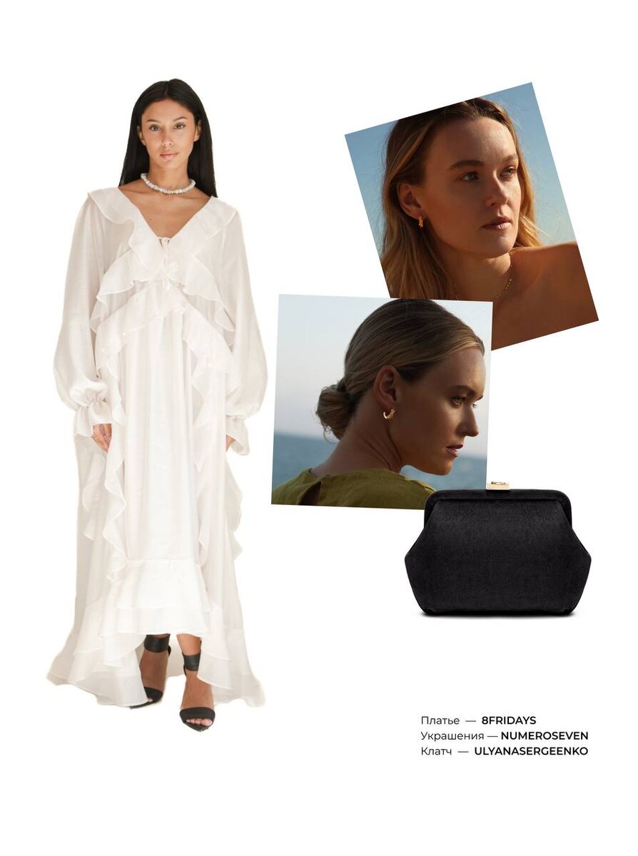 А мы снова с кинообразами! Сегодня говорим про фильм «Блондинка за углом». Вгляделись в истории героинь и сразу представили, как их стиль выглядел бы сегодня. Надежда, которую потрясающе сыграла Татьяна Догилева, — харизматичная продавщица гастронома, ставшая кульминацией для романтической истории. Её характер — смесь прагматизма и спонтанности, тоски по простым радостям и умения жить в дефиците с достоинством. Она одновременно зовёт к действию и придаёт смысл обычному дню. Она бы точно обратила внимание на платье с воланами 8FRIDAYS, которое смягчило бы её формальную силуэтность, сумку Ulyana Sergeenko и украшения Numero Seven. Регина, пианистка из консерватории и несостоявшаяся невеста Николая, главного героя, — меланхоличная отрешённость в чистом виде. Для неё идеально подошли бы платье-комбинация SHTRIPLING, украшения Tulipo Nero и лаконичные аксессуары COSHO, подчёркивающие спокойную строгость. При этом Татьяна Васильевна, мать главного героя и— женщина скромная, старой закалки