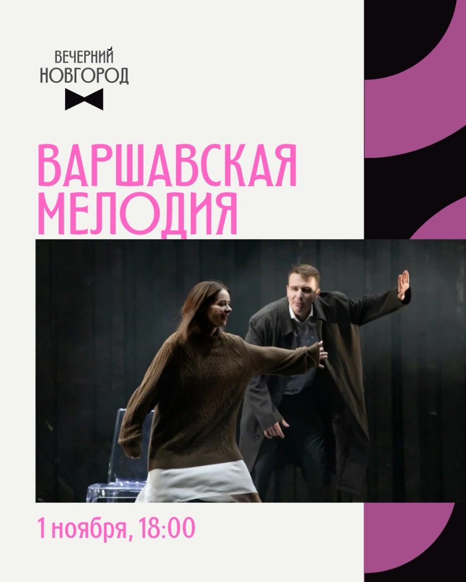 🎭 «Варшавская мелодия» в Великом Новгороде Леонид Зорин написал «Варшавскую мелодию» в 1960-е годы, вложив в пьесу личную историю. Её главная тема — обречённость любви под давлением обстоятельств и запретов. В послевоенной Москве встречаются польская студентка Гелена и молодой винодел Виктор. Их чувства длятся десятилетия, но на пути встают государственные ограничения, амбиции и выбор между долгом и счастьем. «Варшавская мелодия» — пронзительная история о любви, которая сильнее времени, и о цене, которую приходится платить за сделанный выбор. 🗓 1 ноября, 18:00 📍 КЦ «Акрон» 🎟 Билеты тут