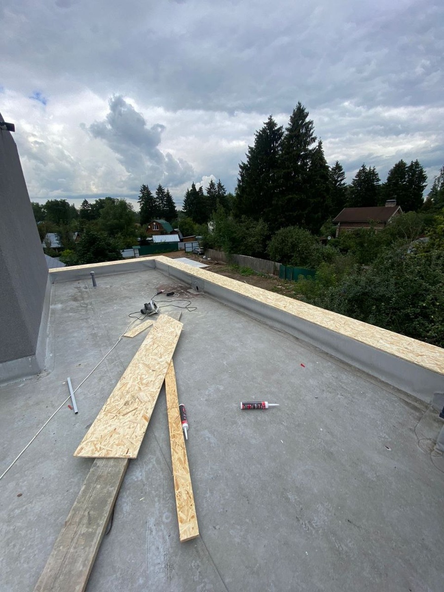Ну можно сказать освоили устройство парапетных крышек, сейчас готовим основание из влагостойкого ОСП, далее сверху монтируем сами "крышки" и смотрим как получится. Отлив снаружи решили сделать массивным, чтобы он закрыл шайбы, которые прижимают мембрану. Скоро покажу законченный фасад 🤗