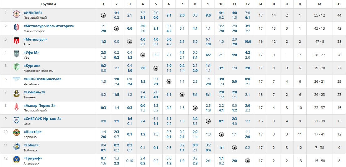 Турнирная таблица после окончания 17-тура по футболу третьей лиги