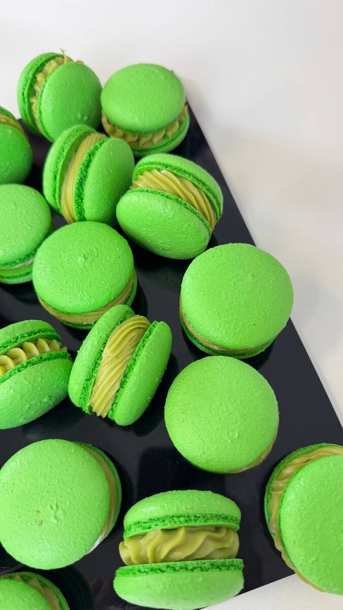 Вчера провела мастер класс по приготовлению макарон! Мы учились готовить макарон на итальянской меренге! Все свои мастер классы провожу в формате 💯 практика! Все ученики своими ручками готовят десерты. В этот раз готовили и начинку фисташка малина! ✔️Красивые зеленые крышечки ✔️красивый зеленые фисташковый ганаш с натуральной пастой фисташки ✔️насадка для отсадки начинки французская звезда 🌟 Как вам наш результат ?