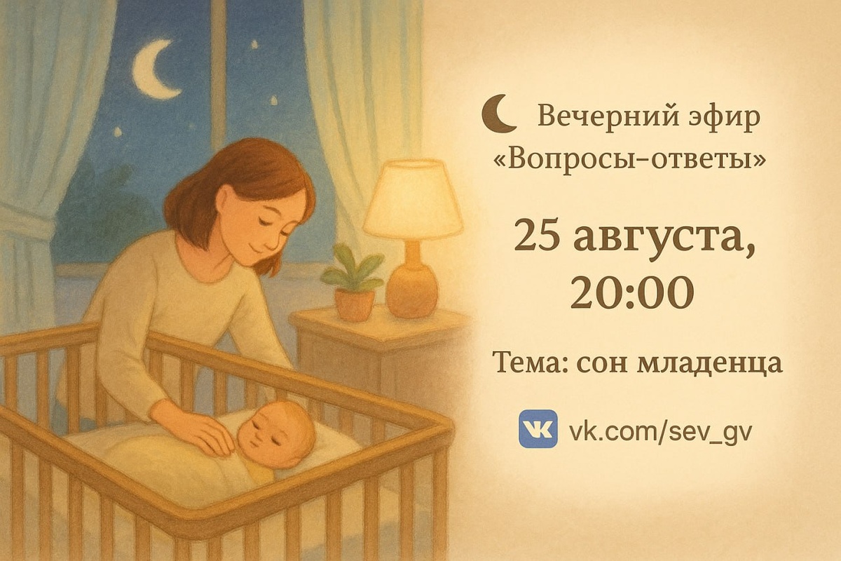🌙 Вечерний эфир «Вопросы-ответы» Тема: сон младенца 📅 25 августа 🕗 20:00 (мск) 📍 ВКонтакте — vk.com/sev_gv Почему малыши спят не так, как взрослые? Как наладить ночи, чтобы высыпались все? Поговорим о ритуалах, биоритмах, безопасном совместном сне, частых пробуждениях и… о том, когда это всё меняется к лучшему 💛 Отвечу на ваши вопросы не только про сон — можно задать любую тему про малыша и грудное вскармливание. Атмосфера будет тёплая, а информация — без мифов и страшилок 🌿 ______________ 💦Тут интересное про мам и младенцев 💦 ГИД для МАМ по ГВ 🤱 АНО "Мама"