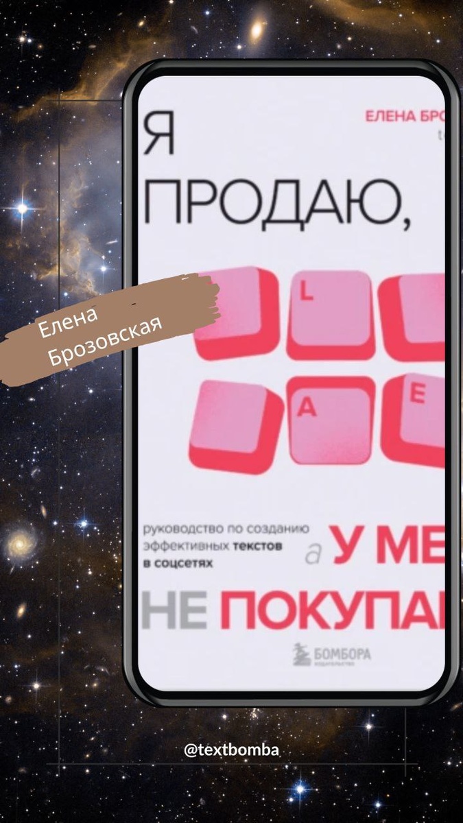 Отзыв на книгу: Я ПРОДАЮ А У МЕНЯ НЕ ПОКУПАЮТ. Автор: Елена Брозовская. Определилась, что куплю ее, еще как только автор о ней обмолвилась впервые. И я была права. Для меня Лена большой авторитет и в продажах, и в текстах. Ещё не дочитав до конца, я уже сделала вывод, что эта книга настольная, и копирайтеры (и я, в том числе) её будут залистывать до дыр как справочник. Вроде бы известные каждому копирайтеру вещи, но почти каждый в них делает одни и те же ошибки. Иногда понимаешь, что что-то не так, а что... Лена даёт настоящие примеры из жизни: удачные, почти удачные и совсем нет, и как раз это помогает найти ошибку. Если вы копирайтер, вам ее нужно прочесть обязательно, по умолчанию. Ещё хочу акцентировать внимание, что это не только книга-практикум, но и настоящий консалтинг для вашего бизнеса. Она позволит найти ляпы и белые пятна при ведении его в соцсетях. Если вдруг вы не копирайтер, а сами пишете тексты для вашего бизнеса. Очень и очень рекомендую. Если говорить о компетентности