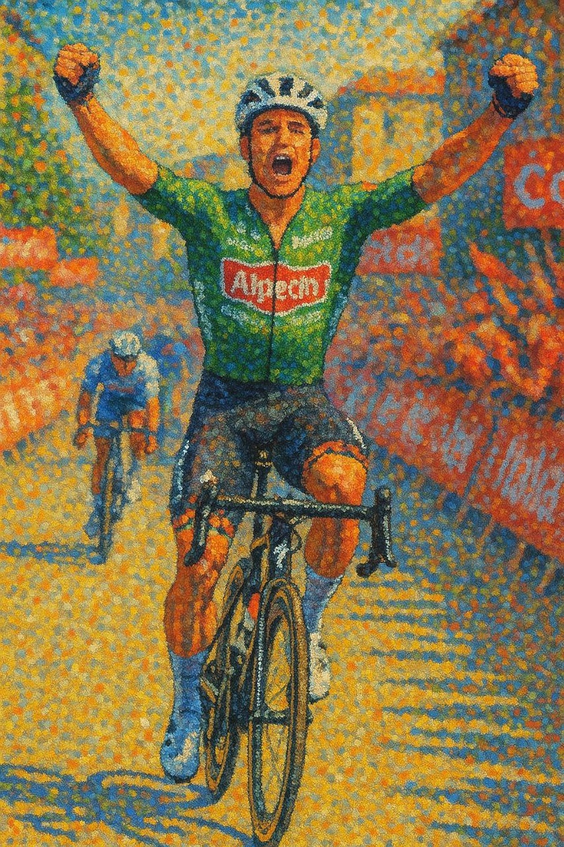 Яспер Филипсен более чем успешно восстановился от травмы ключицы, полученной в июле при падении на Тур де Франс - бельгиец стал триумфатором первого этапа стартовавшей в Италии Вуэльты. В стиле картин пуантилистов